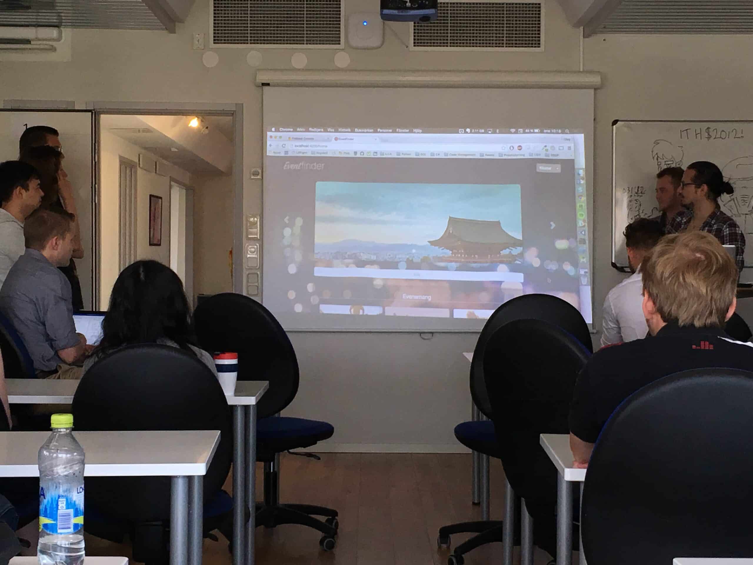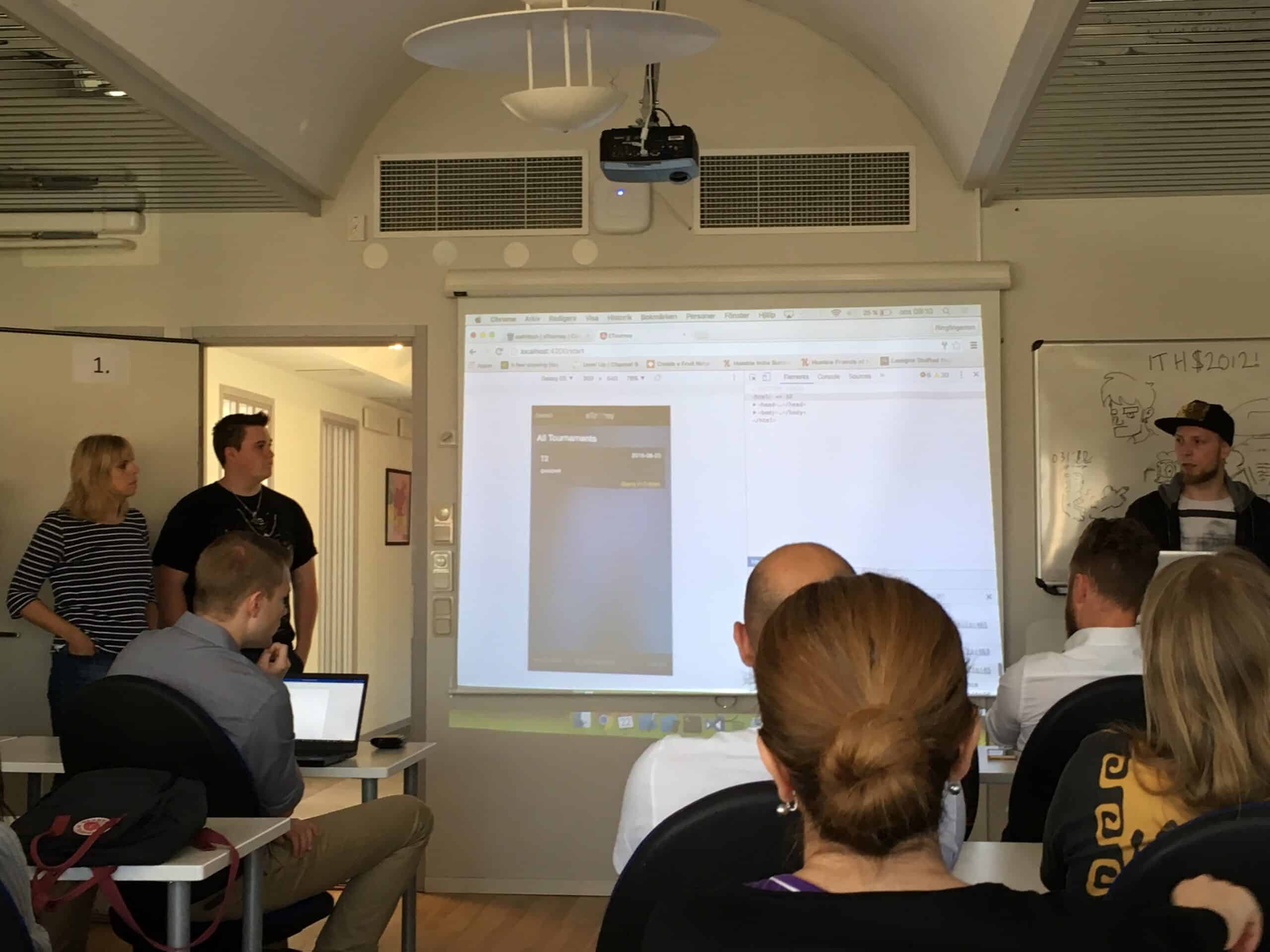I dag var det slutredovisning i projektet som berörde både Applikationsutvecklare till iPhone och Android och Mjukvarutestare. Under projektet har båda utbildningarna arbetat ihop för att efterlikna en riktig företagsmiljö. Olika case har genomförts för att träna olika moment och även känna på hur det är att arbeta med fler roller i ett team. Arbetsformen var agilt enligt Scrum-metoden och innebär en demo av skapad produkt efter varje sprint. Apparna är producerade med tekniker som Angular 2, Bootstrap, Tipescript, NodeJS, NPM, Firebase och PhoneGap/Cordova. Testningen genomfördes främst med Cucumber med manuella- och automatiseradetester. En spel-, parkerings-, event- och postitapp skapades under detta projekt. Nu väntar välförtjänt sommarlov, bra jobbat under första studie året alla studenter.