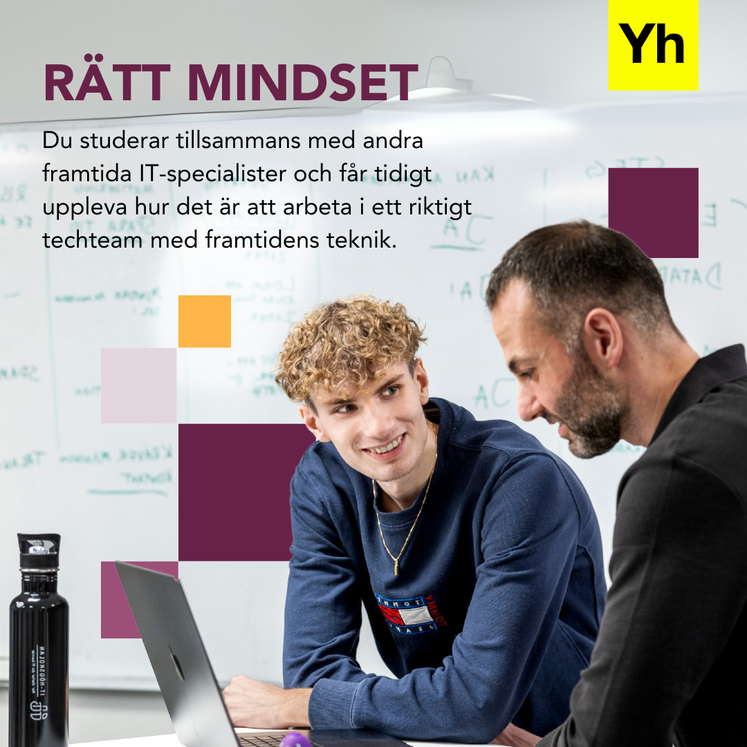 På IT-Högskolan handlar det inte bara om att lära sig teknik. Det handlar om att utveckla ett mindset som gör dig till en naturlig del av IT-branschen. Vi hjälper dig att tänka som en IT-expert, arbeta effektivt i team och förstå både tekniken och kulturen som driver branschen framåt. Här studerar du tillsammans med framtidens IT-specialister inom olika inriktningar, vilket speglar arbetslivet och främjar samarbete mellan olika kompetenser. Hos oss får du inte bara kunskap – du blir en del av ett riktigt tech-team direkt.
